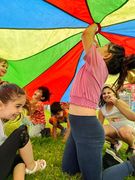 Es gab ein großes Buffet, einen tollen Spielplatz und jede Menge Spaß mit dem Schwungtuch.